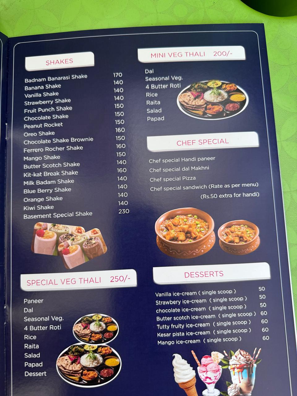 Special menus for events and celebrations
